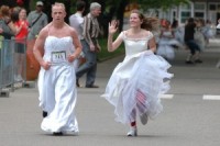 Skrējienā kāzu kleitās piedalās arī vīrieši