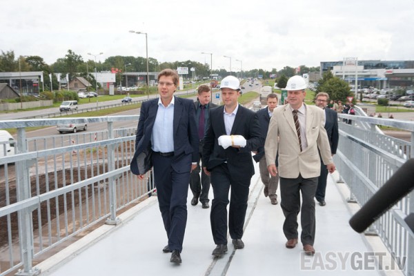 Foto: Rīgas mērs atklāj gājēju tiltu pār Kārļa Ulmaņa gatvi
