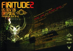 “Finitude” ir bezpretencioza pasākumu sērija, kuras pamatideja ir Latvijā demonstrēt ārvalstu mūziķu dzīvās performances. Šie ir klubu pasākumi, kuros mājīgā un intīmā gaisotnē var izbaudīt dzīvā tehno dažādību. Pirmā “Finitude” notika pērnā gada novembrī klubā “Depo”, un tajā uzstājās Horvātu industriālā tehno jaunlaiku ikona Luka Baumann.