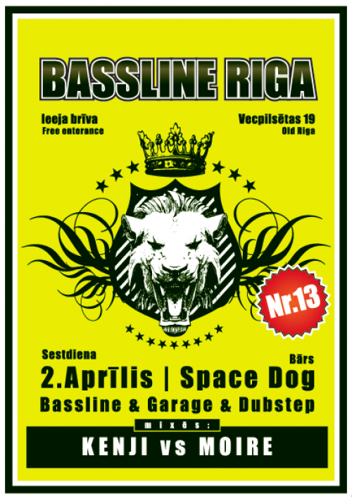 2. aprīlī klubā "Space Dog" bassline, garage, dubstep atskaņos DJ Kenji un DJ Moire.