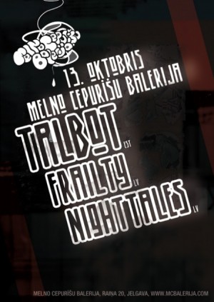 13. oktobrī "Melno cepurīšu balerijā" koncertēs smagās mūzikas grupas Nighttales, Frailty un Talbot (EST).