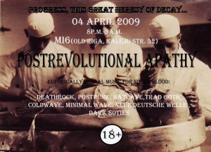 4. aprīlī klubā „MI6” notiks post-punk un new wave noskaņā ieturēts deju vakars ”Postrevolutional Apathy”.