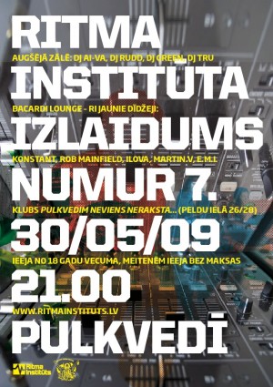 Šo sestdien, 30.maijā plkst.21.00, mūzikas klubā „Pulkvedim neviens neraksta…” notiks jau septītais „Ritma Institūta” izlaidums, šajā reizē CD DJ, Vinil DJ un producēšanas grupu studentiem.