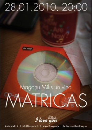28. janvārī bārā "I Love You" ceturtdienu nepopulārās mūzikas vakarus janvārī nobeigs Magoņu Miks un viņa Matricas. Sākums plkst. 20:00.