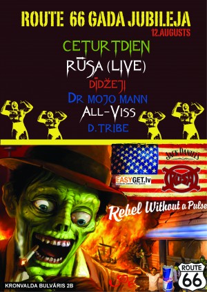 12. augustā bārs "Route 66" atzīmēs gada jubileju. Svinībās piedalīsies grupa "Rūsa" un DJ s Dr Mojo Mann, All-Viss, DTribe.