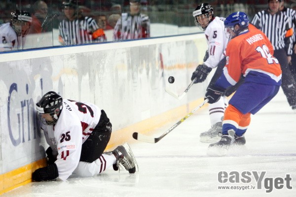 U-18 hokeja izlašu pasaules čempionāta pirmās divīzijas turnīrā, kas risinās Rīgā, "Arēnā Rīga" Latvijas hokejisti pirmajā mačā ar rezultātu 7:0 sagrāva Nīderlandi.