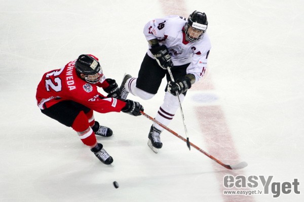 Pasaules U-18 hokeja čempionāta pirmās divīzijas trešajā spēlē sestdien Latvijas izlase ar 2:0 (1:0, 1:0, 0:0) uzvarēja Austriju.