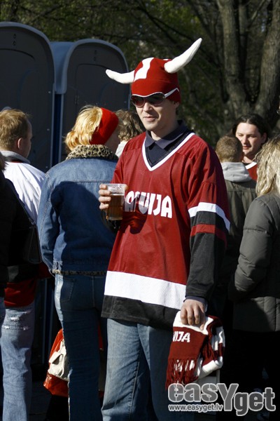 Foto: Fanu telts Esplanādē: Latvija - Šveice