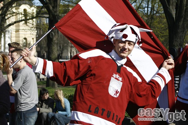 Foto: Fanu telts Esplanādē: Latvija - Šveice