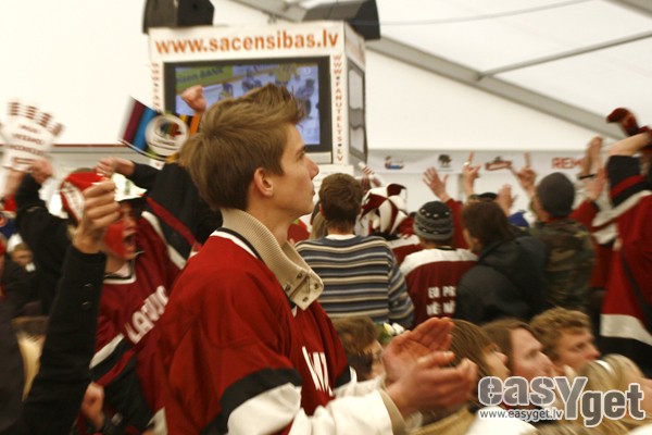 Foto: Fanu telts Esplanādē: Latvija - Zviedrija