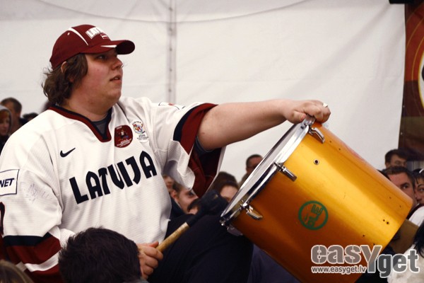 Foto: Fanu telts Esplanādē: Latvija - Zviedrija
