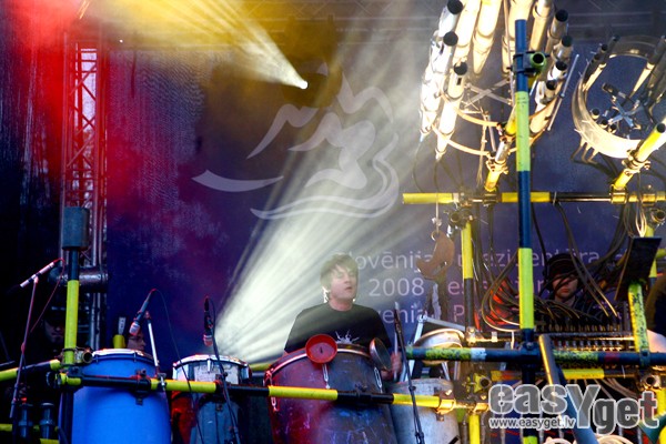Par godu Slovēnijas valsts prezidentūrai Eiropas Savienībā, pirmdienas vakarā Kronvalda parkā uzstājās slovēņu industriālā rokgrupa StrojMachine.
