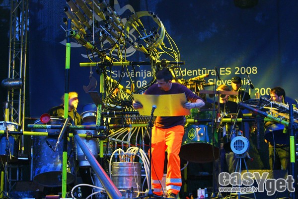 Par godu Slovēnijas valsts prezidentūrai Eiropas Savienībā, pirmdienas vakarā Kronvalda parkā uzstājās slovēņu industriālā rokgrupa StrojMachine.