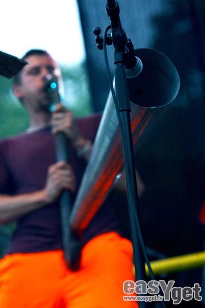 Par godu Slovēnijas valsts prezidentūrai Eiropas Savienībā, pirmdienas vakarā Kronvalda parkā uzstājās slovēņu industriālā rokgrupa StrojMachine.
