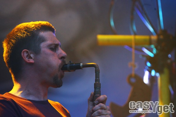 Par godu Slovēnijas valsts prezidentūrai Eiropas Savienībā, pirmdienas vakarā Kronvalda parkā uzstājās slovēņu industriālā rokgrupa StrojMachine.