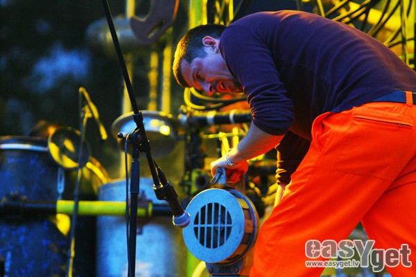 Par godu Slovēnijas valsts prezidentūrai Eiropas Savienībā, pirmdienas vakarā Kronvalda parkā uzstājās slovēņu industriālā rokgrupa StrojMachine.