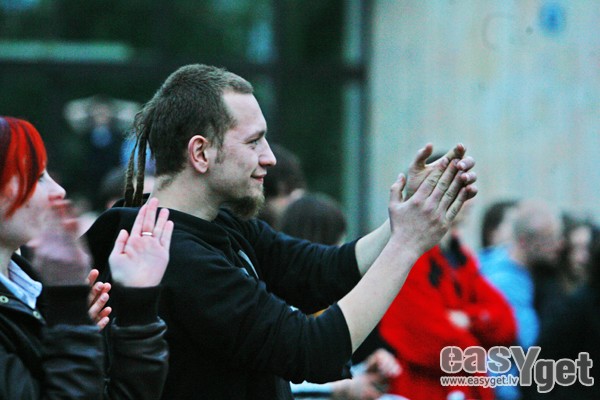 Par godu Slovēnijas valsts prezidentūrai Eiropas Savienībā, pirmdienas vakarā Kronvalda parkā uzstājās slovēņu industriālā rokgrupa StrojMachine.