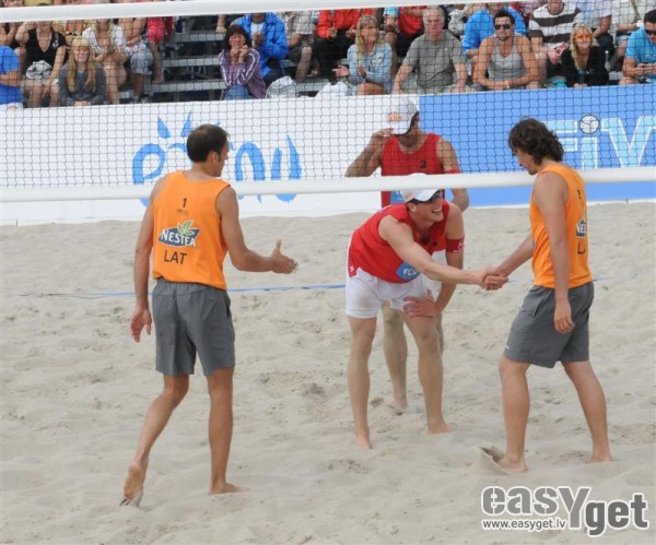 Pērnavā notiekošā FIVB Challenger sacensību pusfinālā J.Gīnbergs/A.Štāls ar rezultātu 0-2 (12-21;25-27) zaudēja šveiciešiem Gabathuler/Wenger, līdz ar to mūsu duetam cīņā par trešo vietu bija jācīnās ar Brazīlijas bīčistiem Lipe/Pitta. Diemžēl bronzas medaļas izcīnīja brazīļi, J.Grīnbergu/A.Štālu pārspējot ar rezultātu 2-0(21-13;21-17). lasīt vairāk »