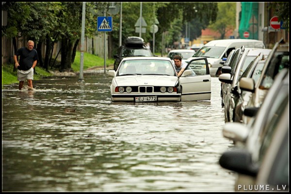 Vakar, 16. jūlijā, spēcīgais lietus appludināja Rīgas ielas.