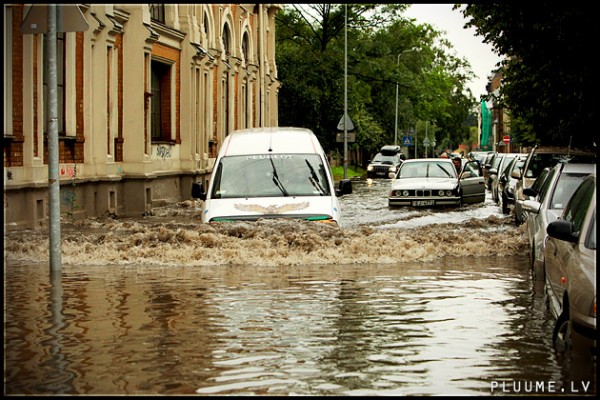 Vakar, 16. jūlijā, spēcīgais lietus appludināja Rīgas ielas.