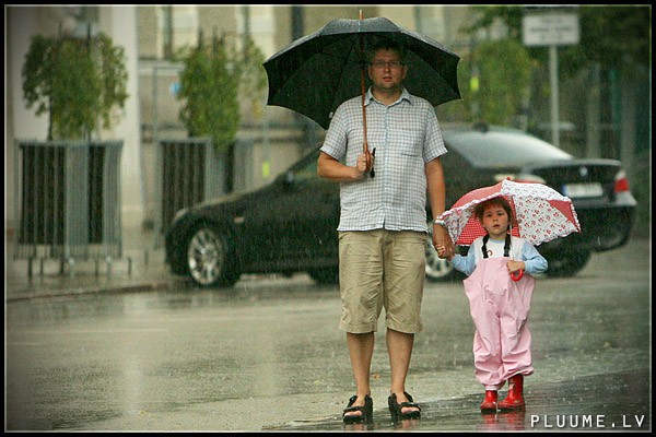 Svētdienas vakarpusē Rīgā pūta stiprs vējš un lija spēcīgs lietus.