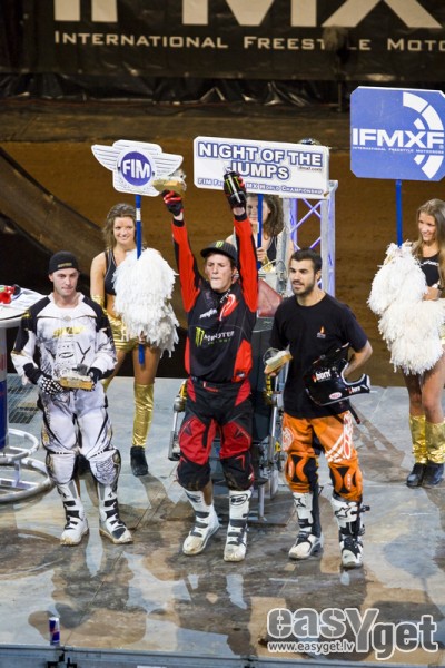 Pēc IFMX pasaules motofrīstaila čempionāta vasaras pārtraukuma pasaules labākie motofrīstaila sportisti atkal satikās 10. oktobrī "Arēnā Rīga", kur notika 8. čempionāta posms FMX Latvijas Grand Prix – NIGHT of the JUMPs. Šoreiz uz goda pjedestāla augstākajiem pakāpieniem kāpa divi franču motobraucēji, kuri pārspēja spāni Hose Mirallesu. Savukārt lielāko pārsteigumu Rīgā radīja "X Games" un "Red Bull X-Fighters" dalībnieks, norvēģis Andre Villa, kurš kvalifikācijā izcīnīja tikai 8. vietu un attiecīgi neiekļuva finālā. lasīt vairāk »
