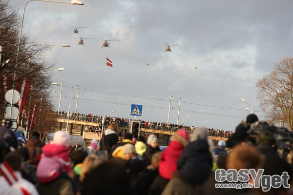 Šodien 11.novembra krastmalā vērot Nacionālo bruņoto spēku (NBS) vienību militāro parādi bija ieradušies vairāki tūkstoši cilvēku.