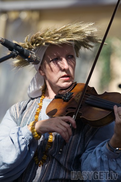Pagājušajā nedēļā Kurzemes novada dienu ietvaros brīvdabas atpūtas parkā "Egle" muzicējā Austra Pumpure un folkloras kopa "Atštaukas".