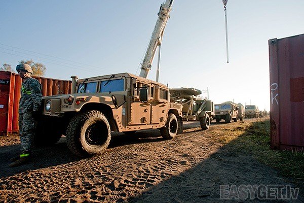 Foto: Militārās tehnikas izkraušana Ropažu stacijā
