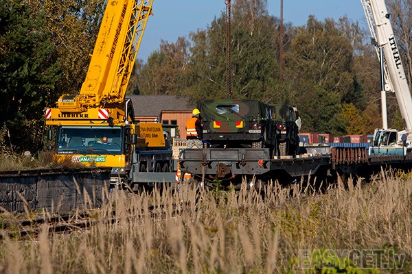 Foto: Militārās tehnikas izkraušana Ropažu stacijā