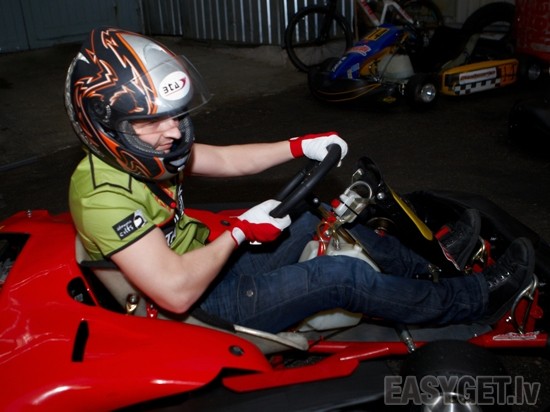 Foto: BTA Sieviešu dienas rallijam dalībnieces iesildās Ātruma cilts kartinga hallē