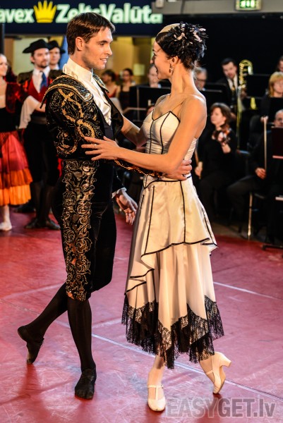 Foto: Baleta festivāla atklāšana Rīgas Dzelzceļa stacijā