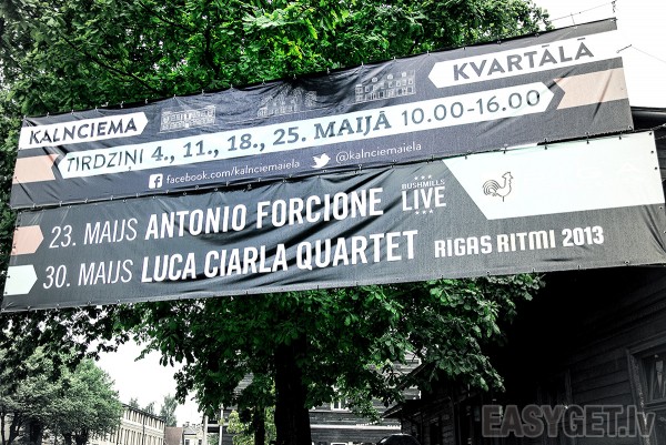 23. maijā Kalnciema kvartālā brīvdabas koncertā uzstājās ģitāras virtuoza Antonio Forcione. Koncertu iesildīja džeza mūziķi „Jāņa Ruņģa klātbūtne”.