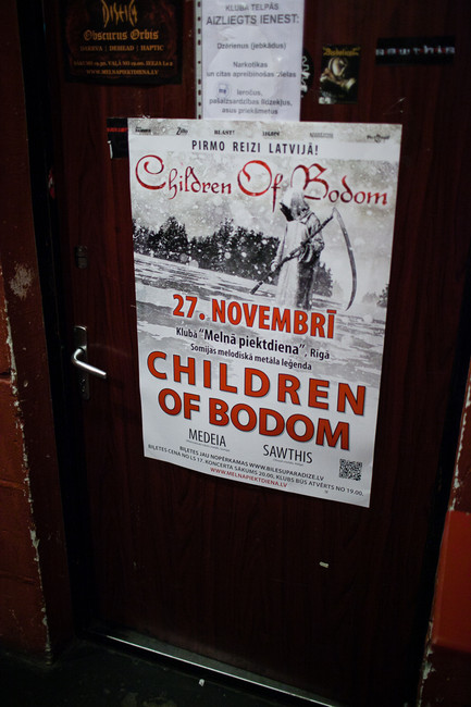 Trešdienas vakarā klubā Melnā Piektdiena kā veltījumu Zolitūdes traģēdijas upuru piemiņai koncertu sniedza somu melodiskā death metal grupa Children Of Bodom.