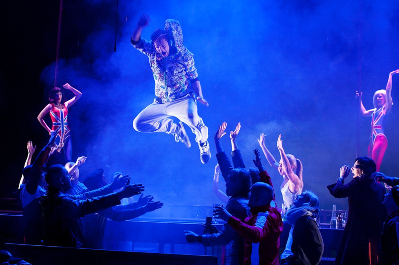 Skatītājus gaida patiešām krāsainu notikumu un skaļas mūzikas ņudzeklis raupjas scenogrāfijas pavadībā