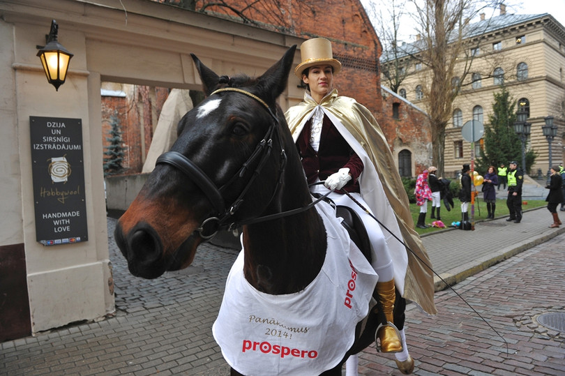 Vēlot enerģisku un raženu Zirga gadu visiem sastaptajiem, ceturtdienas rītā Rīgas centru izstaigāja Laimes zirgs.