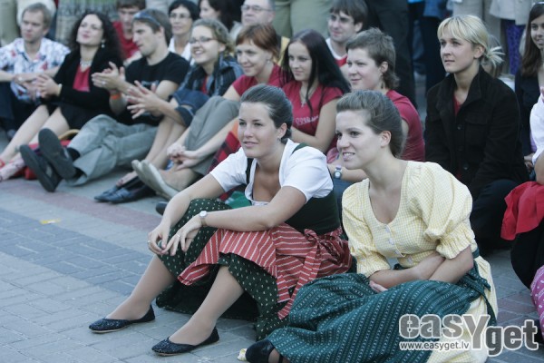 Laukumā pie Kongresu nama vakar valdīja īsts krāsu prieks. Sievietes lavandas krāsas tērpos, jodelētāji samta biksiņās uz lencītēm, meitenes melnās samta kleitiņās zeltītām lentītēm, vīri ozolzaru vainagos un tumšzilos uzsvārčos un vēl ar buktētām biksēm, rozā jaciņas, sarkani krekliņi un vēl simts citu nianšu nacionālajos un vienkārši goda tērpos. lasīt vairāk »