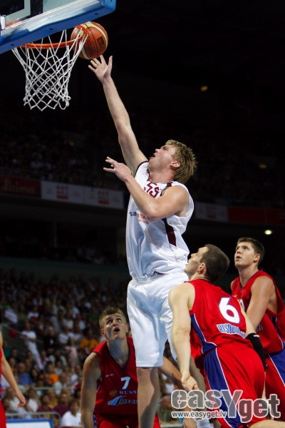 Piektdien Latvijas Nacionālā vīriešu basketbola izlase „Arēnā Rīga” izcīnīja vēsturisku uzvaru ar 87:80 pārbaudes spēlē pret Krievijas valstsvienību. Šī bija pēdēja Latvijas izlases atrādīšanās savu skatītāju priekšā pirms Eiropas čempionāta, kurš šogad notiks Spānijā. Par mača MVP tika atzīts Sandis Valters, kurš atzīmējās ar 17 gūtajiem punktiem. lasīt vairāk »