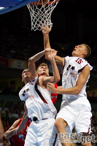 Piektdien Latvijas Nacionālā vīriešu basketbola izlase „Arēnā Rīga” izcīnīja vēsturisku uzvaru ar 87:80 pārbaudes spēlē pret Krievijas valstsvienību. Šī bija pēdēja Latvijas izlases atrādīšanās savu skatītāju priekšā pirms Eiropas čempionāta, kurš šogad notiks Spānijā. Par mača MVP tika atzīts Sandis Valters, kurš atzīmējās ar 17 gūtajiem punktiem. lasīt vairāk »