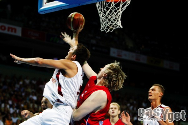 Piektdien Latvijas Nacionālā vīriešu basketbola izlase „Arēnā Rīga” izcīnīja vēsturisku uzvaru ar 87:80 pārbaudes spēlē pret Krievijas valstsvienību. Šī bija pēdēja Latvijas izlases atrādīšanās savu skatītāju priekšā pirms Eiropas čempionāta, kurš šogad notiks Spānijā. Par mača MVP tika atzīts Sandis Valters, kurš atzīmējās ar 17 gūtajiem punktiem. lasīt vairāk »