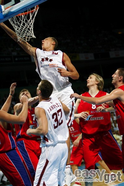 Piektdien Latvijas Nacionālā vīriešu basketbola izlase „Arēnā Rīga” izcīnīja vēsturisku uzvaru ar 87:80 pārbaudes spēlē pret Krievijas valstsvienību. Šī bija pēdēja Latvijas izlases atrādīšanās savu skatītāju priekšā pirms Eiropas čempionāta, kurš šogad notiks Spānijā. Par mača MVP tika atzīts Sandis Valters, kurš atzīmējās ar 17 gūtajiem punktiem. lasīt vairāk »
