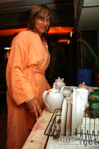 Baltā nakts. Sīki un nekaitīgi, bet arī neciešami smidzina lietus. Garām pabrauc krāsainām lampiņām rotātais tramvajs, tad nākamais, kā uz Jāņiem – greznots lielām vītnēm. Tuvojamies stacijas tunelim. Ir ap pusnakti. Nemīlīgi un mazliet gribas mājās. Pretēji ierastajai drēgnajai pustumsai, nokāpjot lejā, šoreiz acīs iesitas siltas gaismas. Visnotaļ astoņdesmito gadu interjers, flīzes klāj linolejs, zuz TV kaste, izlietnē trauku kaudze, uz dīvāna malkojot tēju zviln bariņš jauniešu halātiņos un čībās un arī tāpat vien, pie galda kaut kur manīts vīrs.. Hmm.. tas izrādās aktieris Juris Strenga, kas blakus sēdošajiem lasa grāmatiņu un runājas par dzīvi, piemeklē mūziku, pie otra galda Andrejs Kalnačš patlaban tērgā ar Marģeru Martinsonu. lasīt vairāk »
