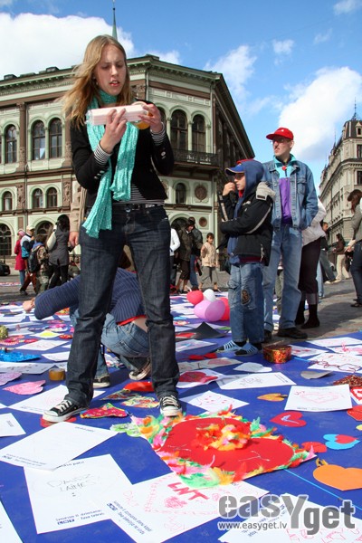 Vakar, 16.septembrī atzīmējot telekompānijas LNT 11.dzimšanas dienu, vairāki simti cilvēku Doma laukumā iesaistījās LNT logo veidošanā.