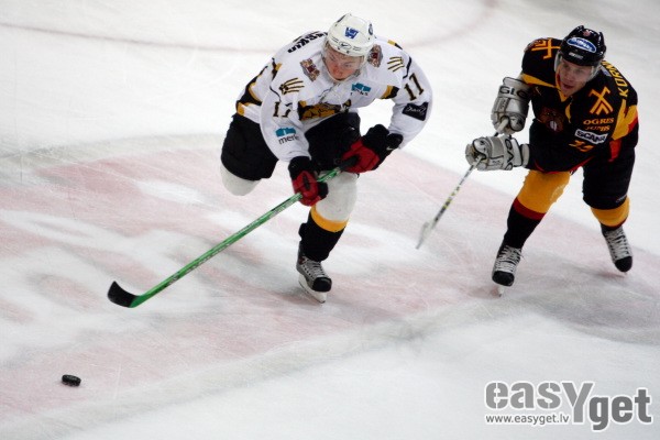 Latvijas atklātā hokeja čempionāta spēlē trešdien pagājušās sezonas finālistu cīņā "Rīga 2000" ar rezultātu 5:2 (1:1, 3:1, 1:0) pieveica "ASK/Ogre" komandu.
