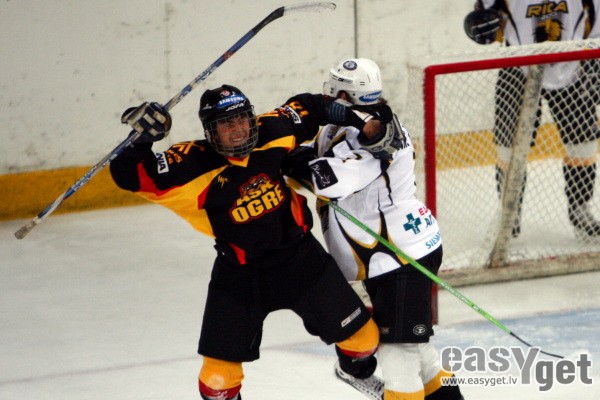 Latvijas atklātā hokeja čempionāta spēlē trešdien pagājušās sezonas finālistu cīņā "Rīga 2000" ar rezultātu 5:2 (1:1, 3:1, 1:0) pieveica "ASK/Ogre" komandu.