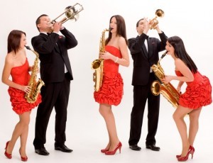Kvintetā muzicē: Jeļena Kovaļenko – Bebriša (alta saksofons), Arnita Akmentiņa (tenora saksofons), Baiba Tilhena (baritona saksofons), Aivars Osītis (trompete), Lauris Zvejnieks (trombons)